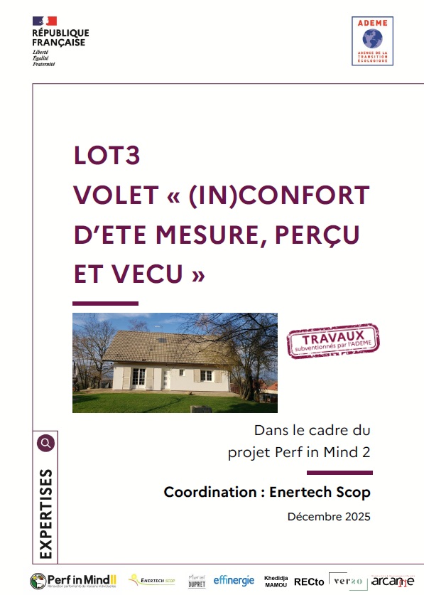 - D’approfondir les résultats de Perf in Mind I sur de nouvelles dimensions : évaluation du confort d’été (mesuré, vécu et perçu par les habitants), analyse en cycle de vie, en coût global, et étude des risques associés à l’usage d’isolants biosourcés lors d’une isolation par l’intérieur.